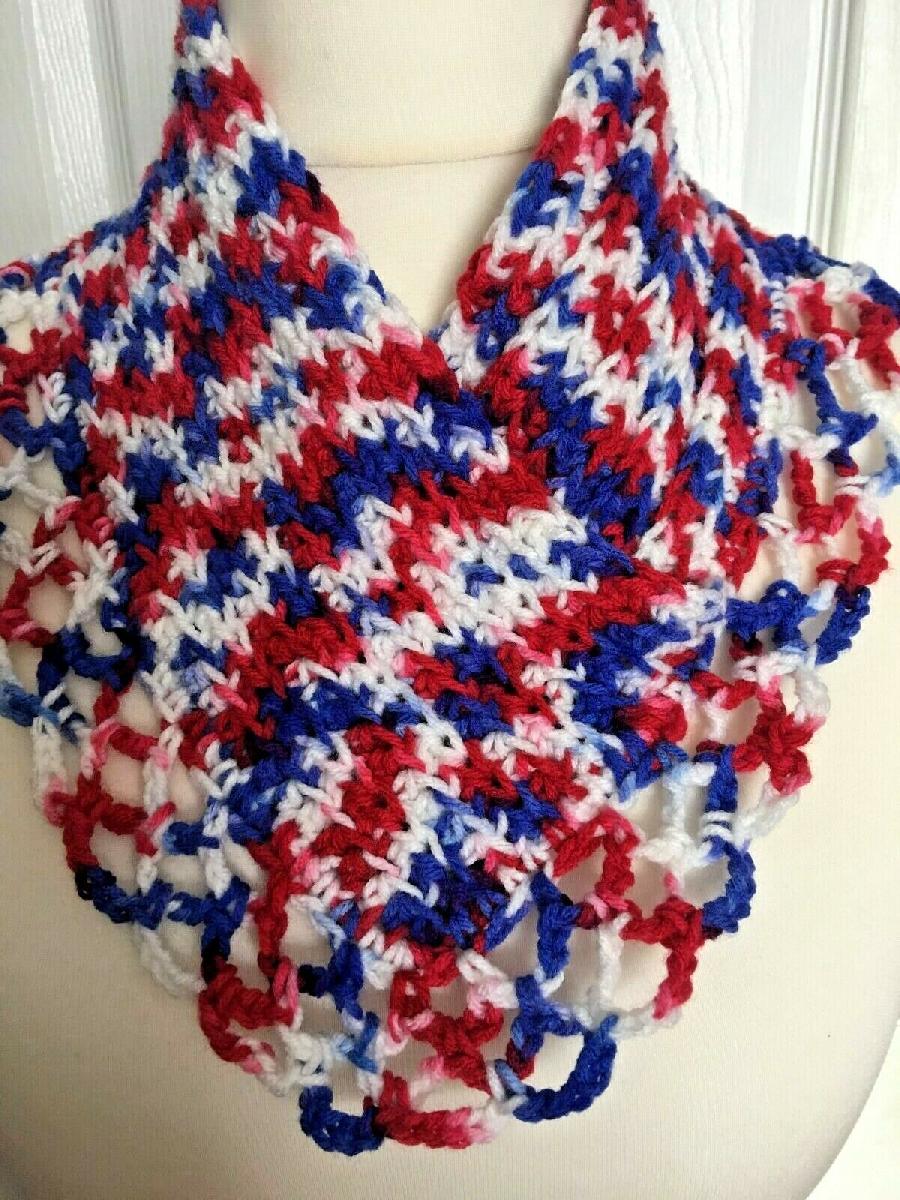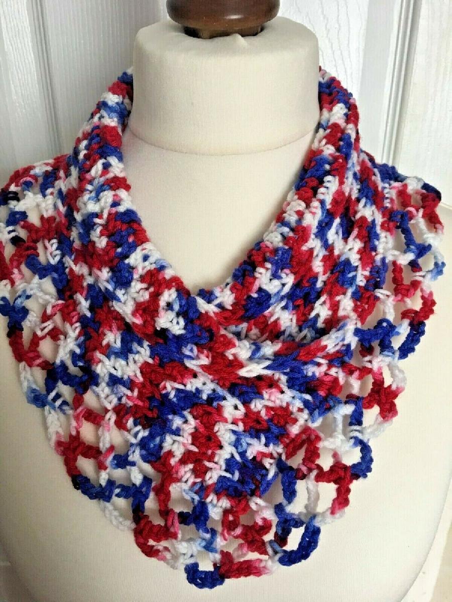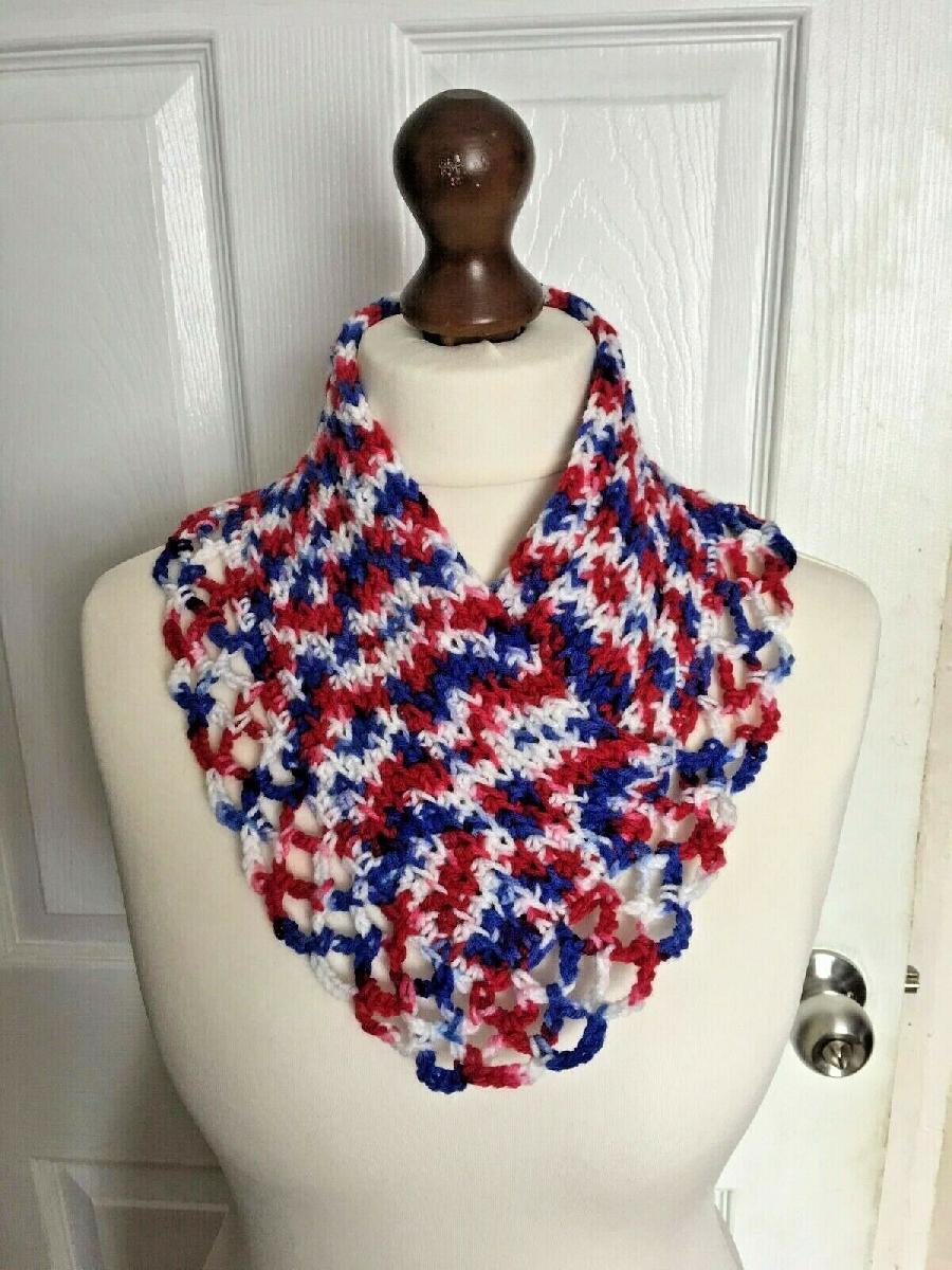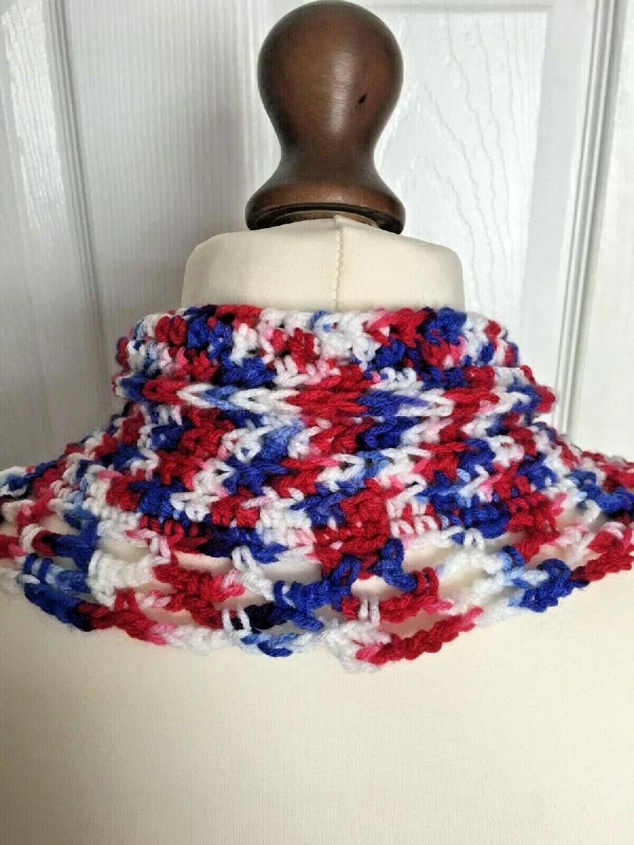 CROCHETED NECK WARMER, ACRYLIC BLUE WHITE RED GEORGE