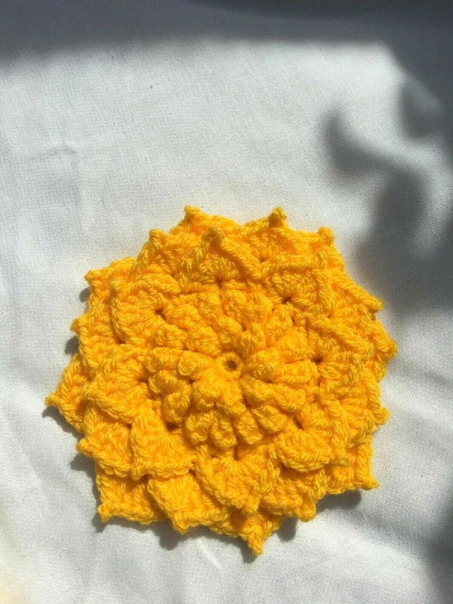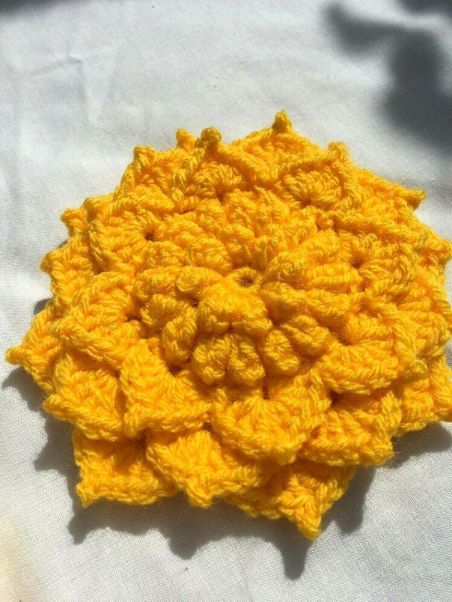 HANDMADE CROCHETED FLOWERS ACRYLIC MUSTARD YELLOW 14 CM