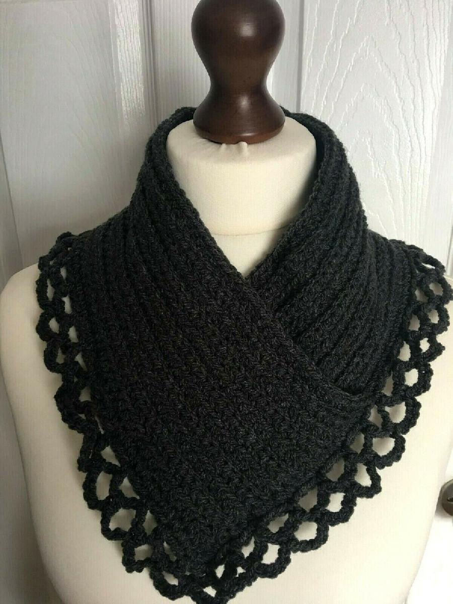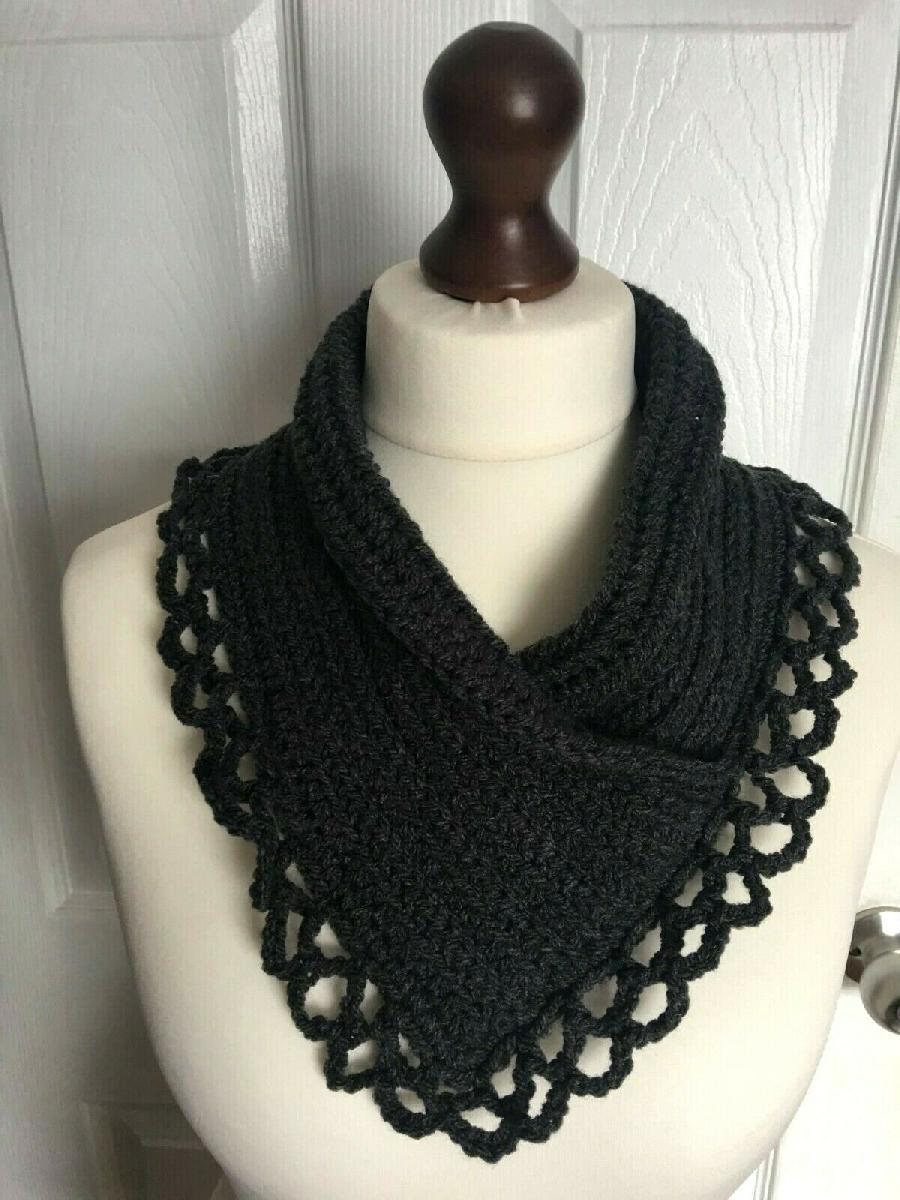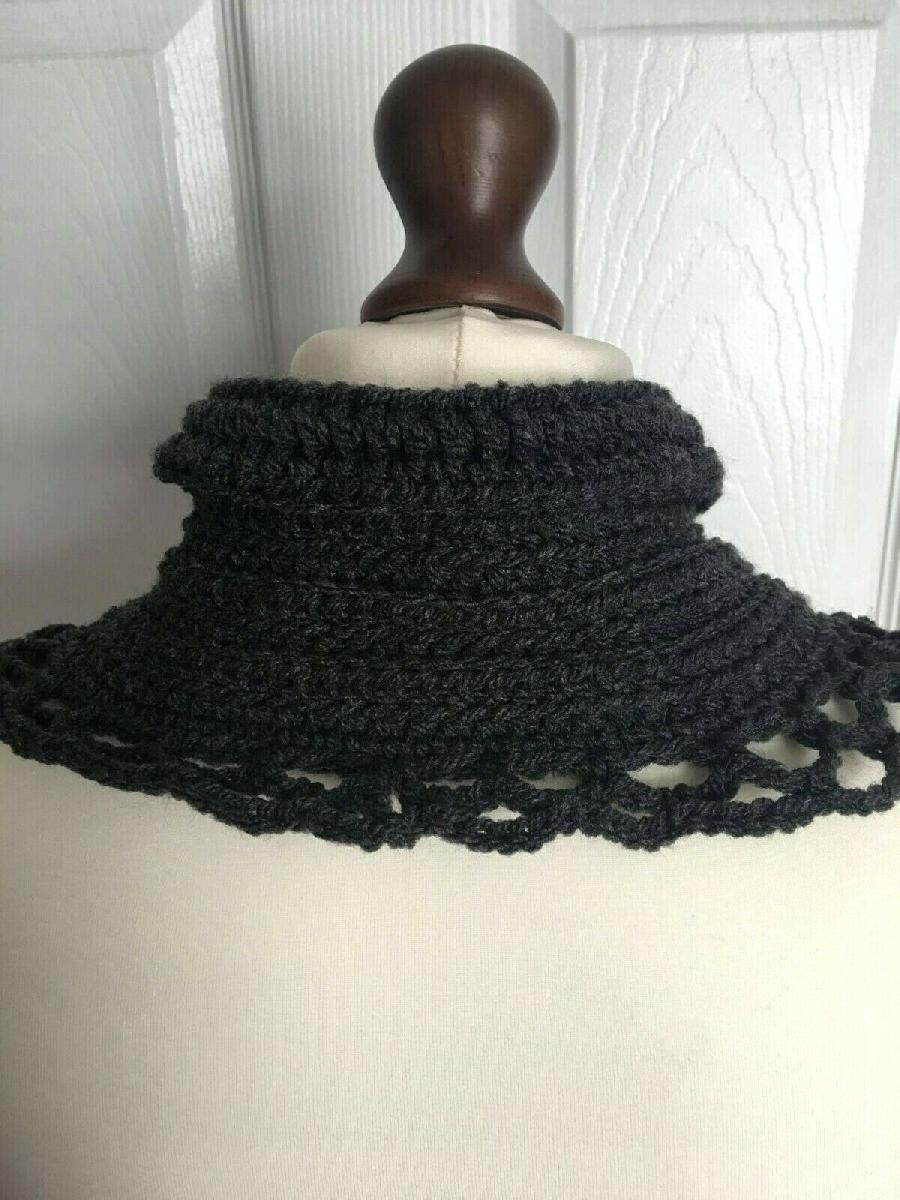 CROCHETED NECK WARMER, ACRYLIC, DARK GREY XXXL