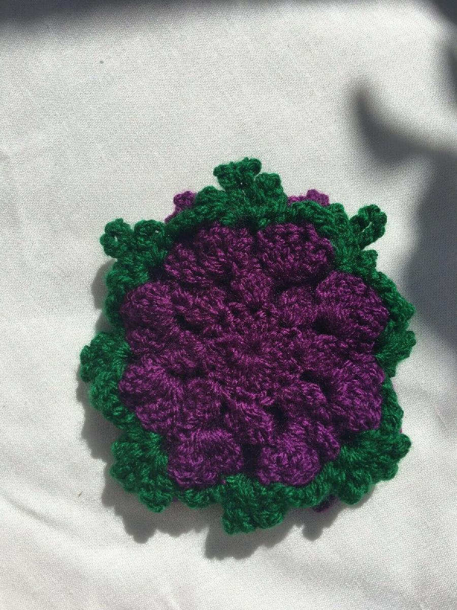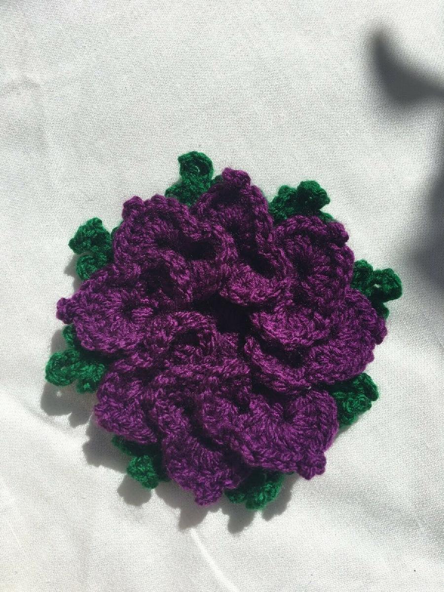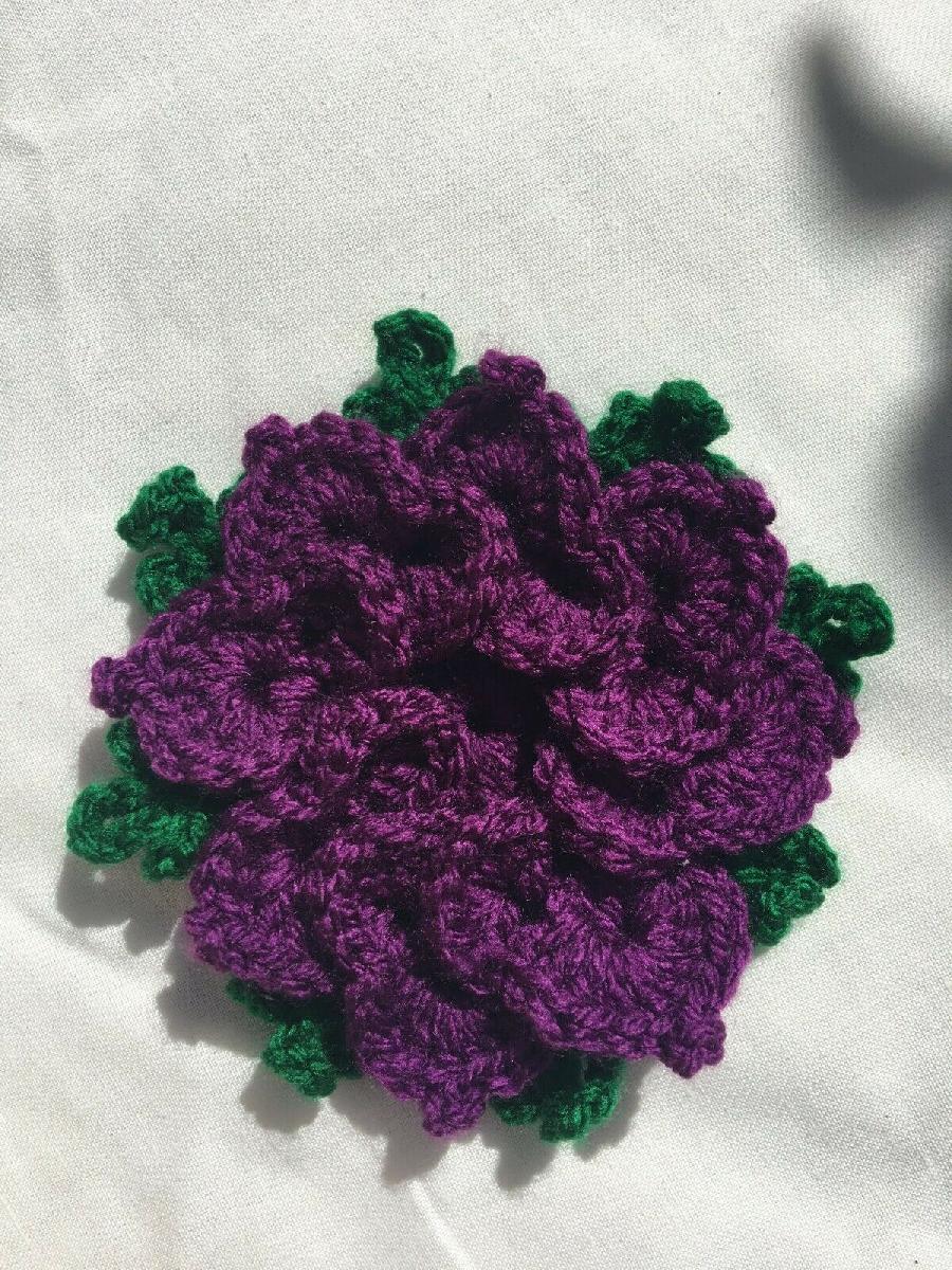 HANDMADE CROCHETED FLOWERS ACRYLIC PURPLE WITH LEAF 13 CM, 5"