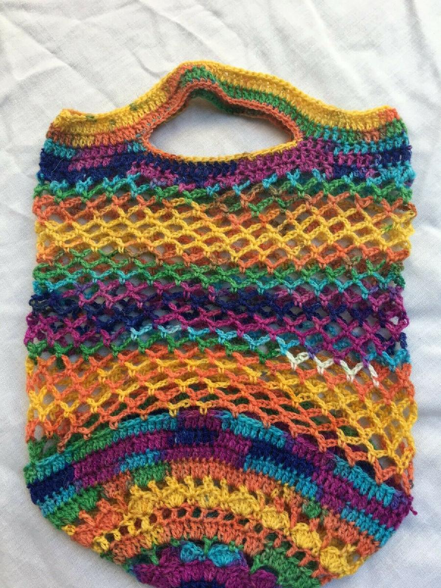 HANDMADE NET SHOPPING BAG RAINBOW CHIC BEACH HANDBAG MARKET BASKET