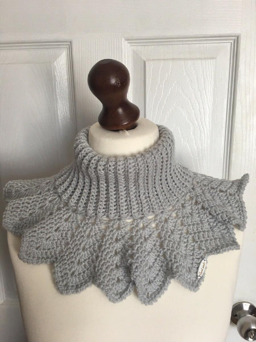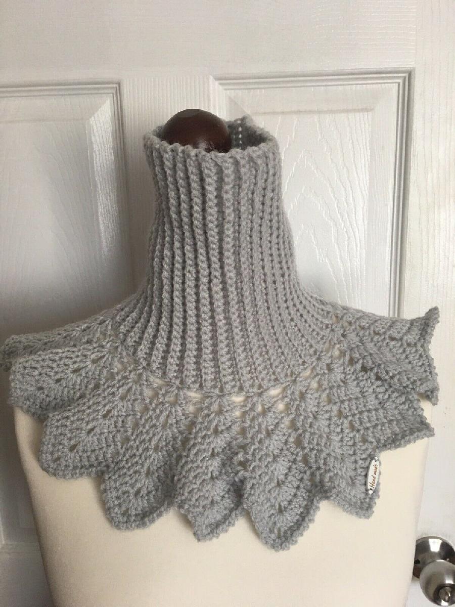 CROCHETED NECK WARMER, ACRYLIC GREY