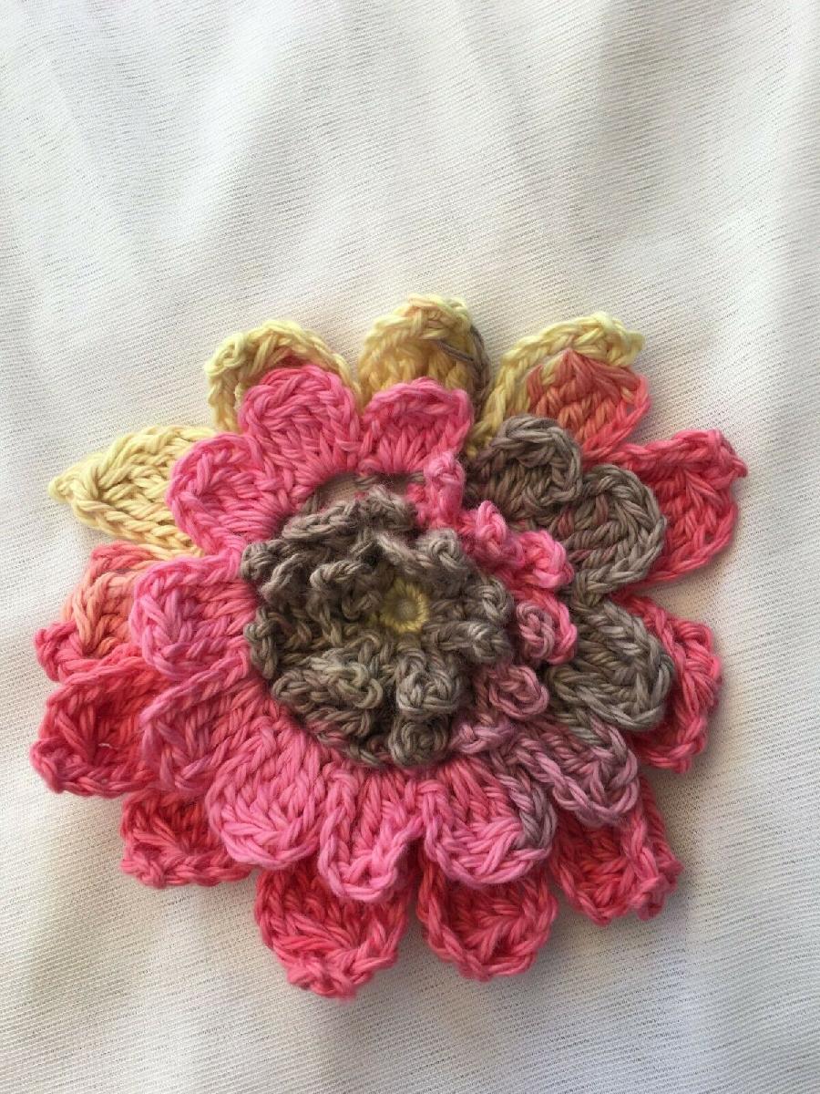 HANDMADE CROCHETED FLOWERS COTTON PINK GREY YELLOW 13 CM, 5"