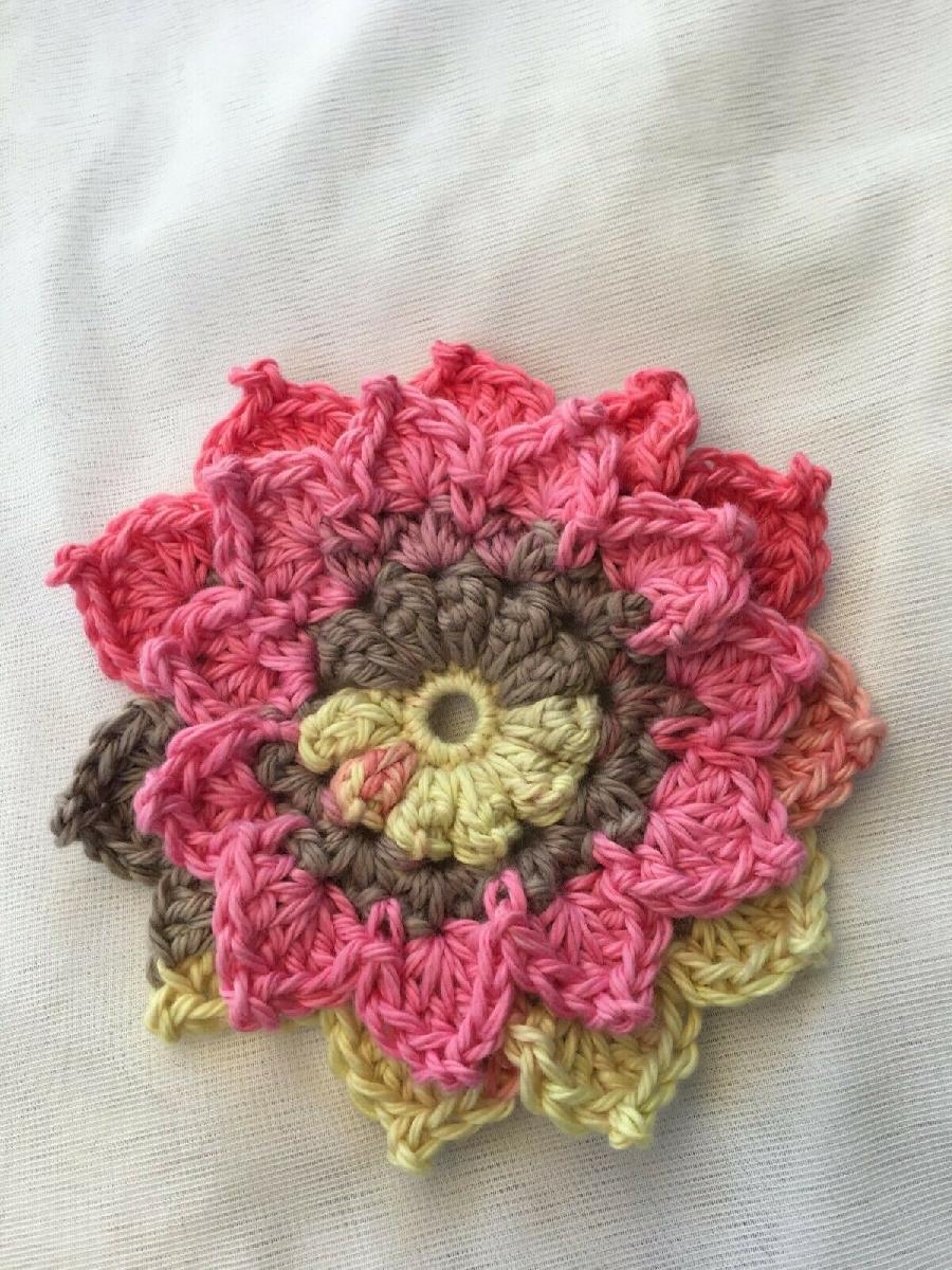 HANDMADE CROCHETED FLOWERS COTTON PINK GREY YELLOW 13 CM, 5"