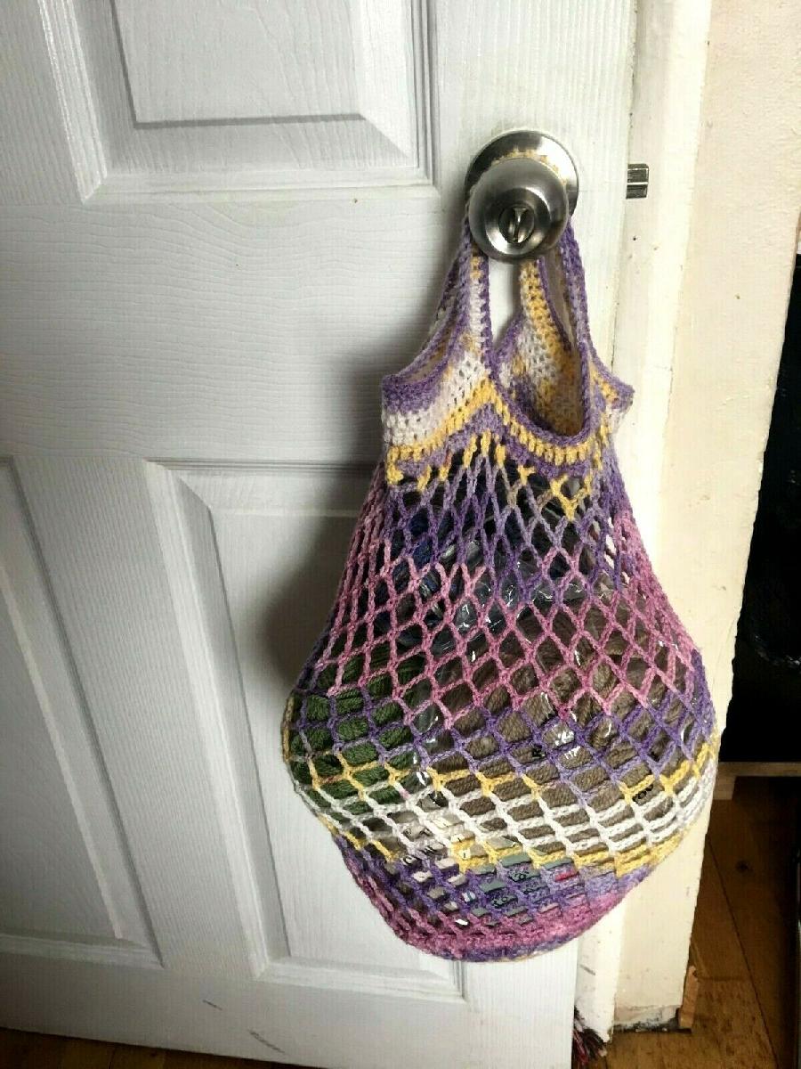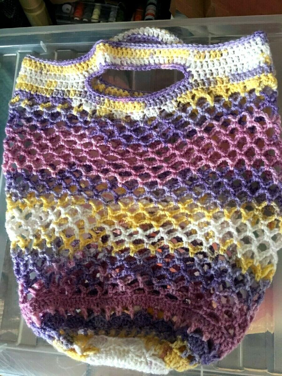 HANDMADE NET SHOPPING BAG COLOURFUL CHIC BEACH HANDBAG MARKET BASKET 14"X12"