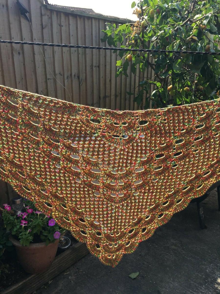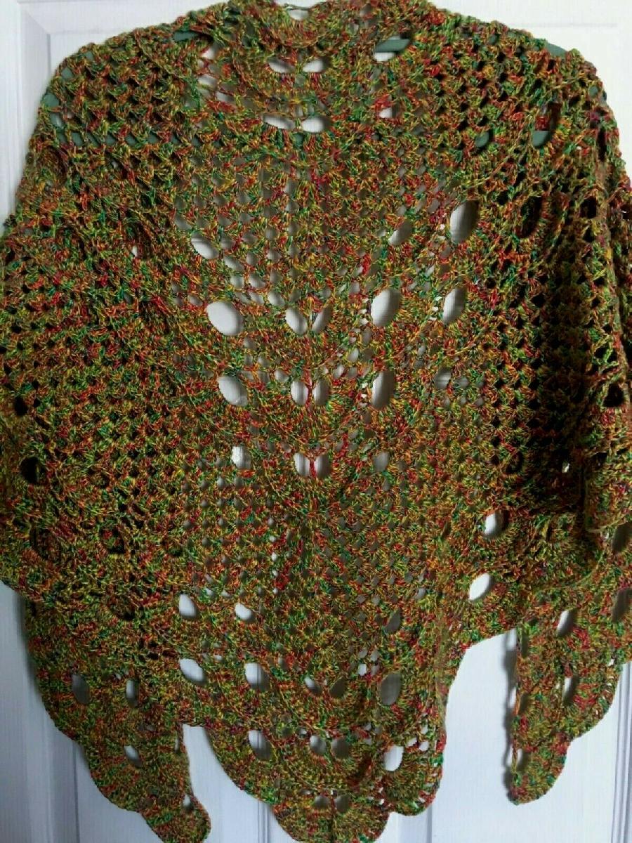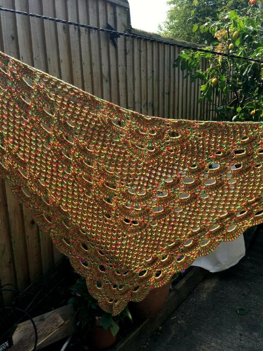NEW HANDMADE CROCHETED YELLOW ORANGE GREEN 50% COTTON 50 ACRYLIC SHAWL
