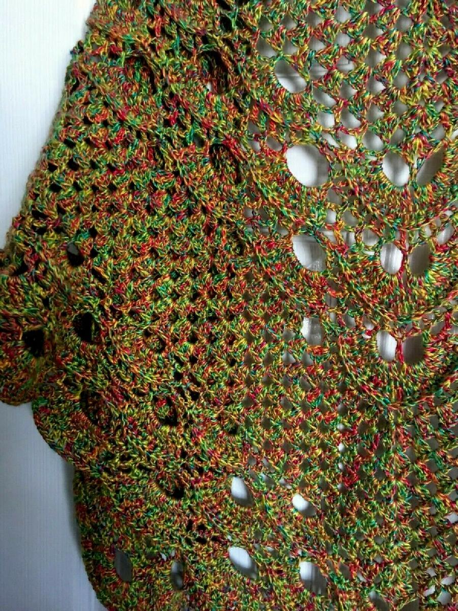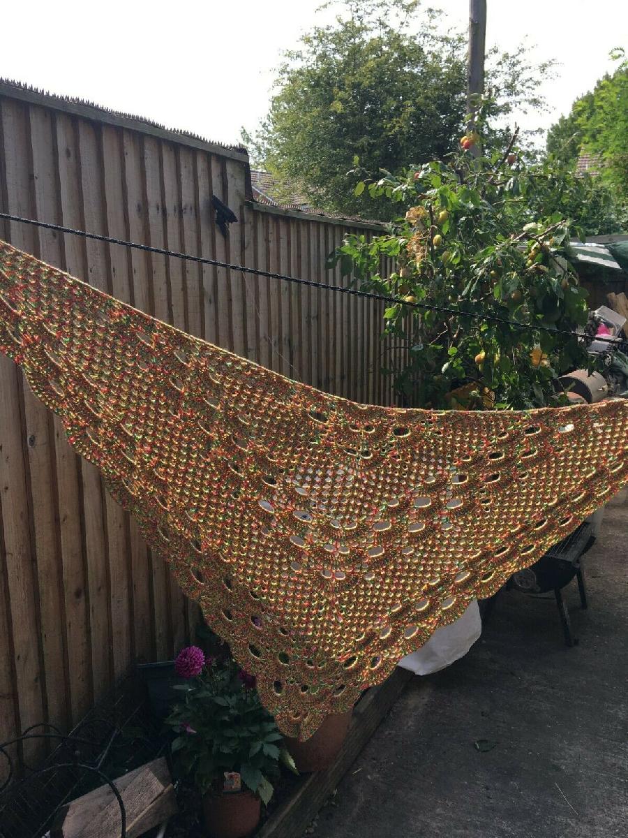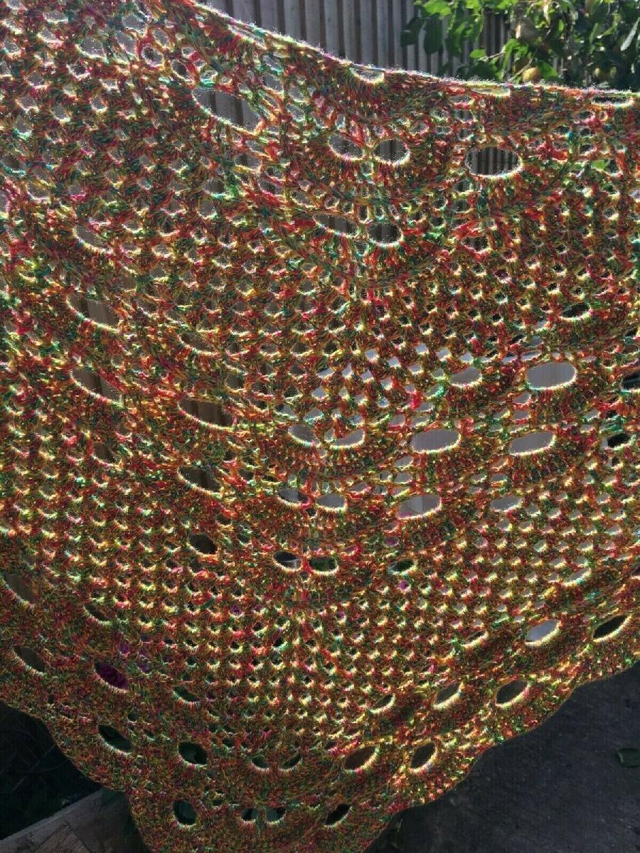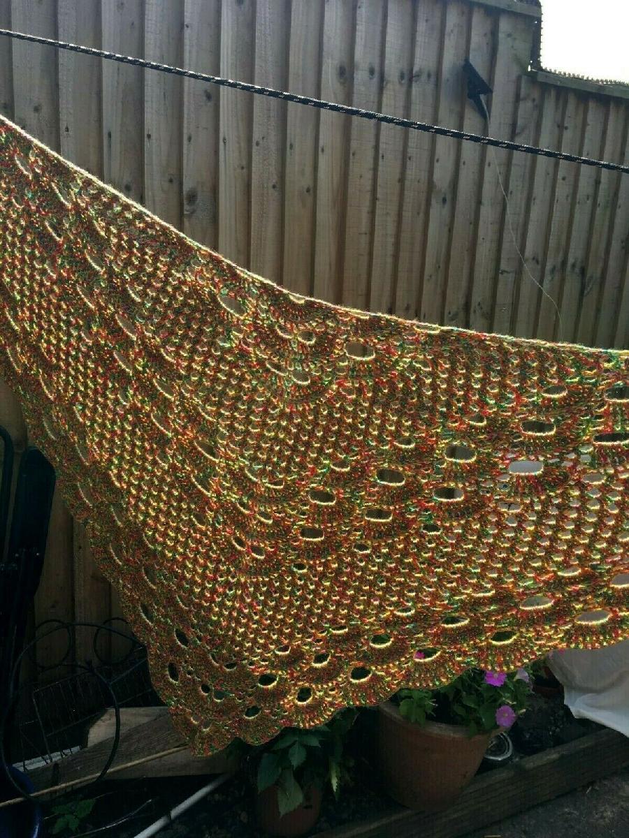 NEW HANDMADE CROCHETED YELLOW ORANGE GREEN 50% COTTON 50 ACRYLIC SHAWL