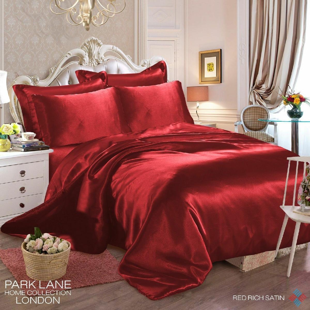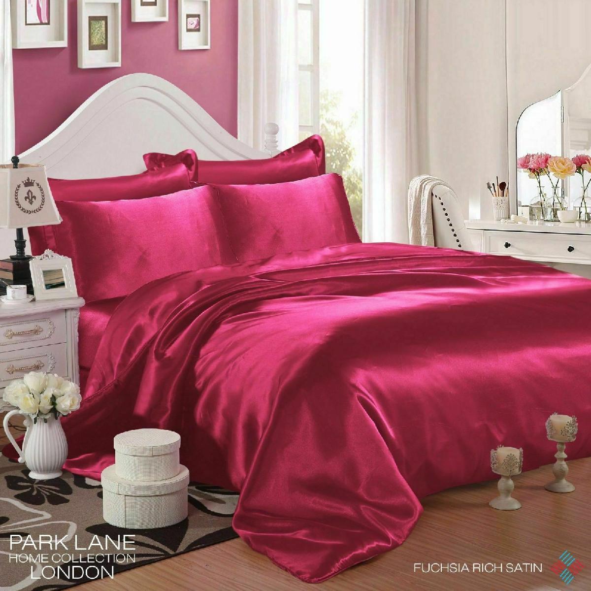 KING SIZE 6 PCS SATIN SILK BEDDING SET DUVET COVER FITTED SHEET & 4 PILLOW CASES [ENDED]