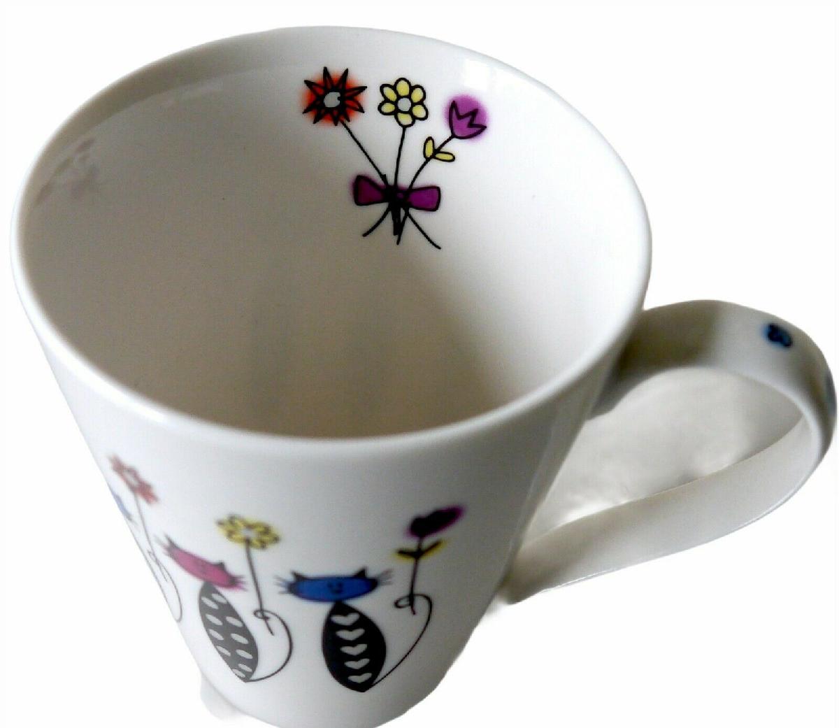 ABSTRACT / FLORAL CAT TEA / COFFEE FINE CHINA MUG - BY WILSCOMBE [ENDED]