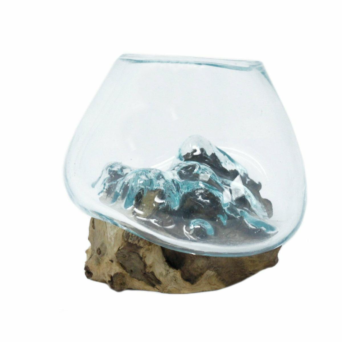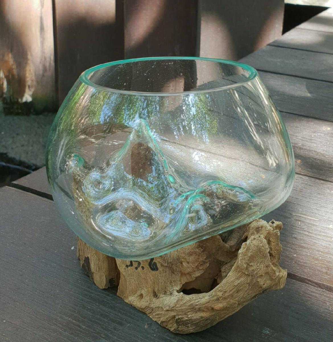 MOLTEN GLASS BOWL ON WOOD, HANDMADE - VARIOUS SIZES [ENDED]