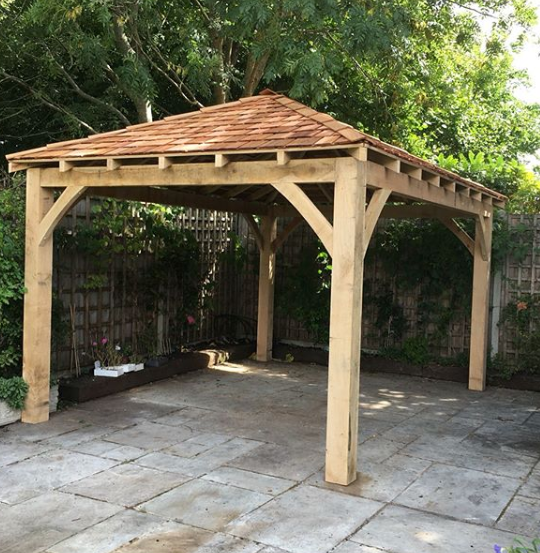 4.0 X 4.0 GREEN ENGLISH OAK FRAMED GAZEBO 150 X 150MM POSTS [ENDED]