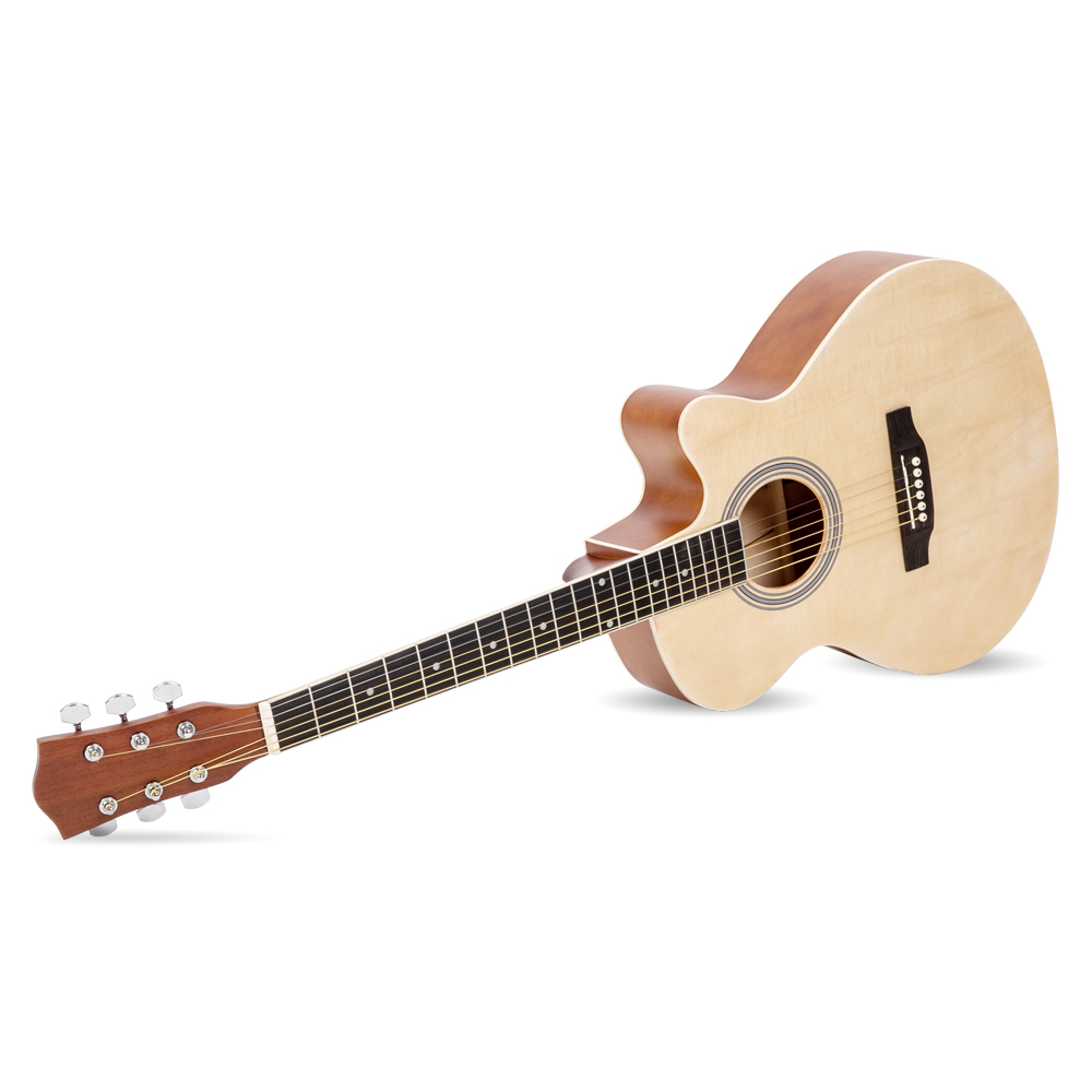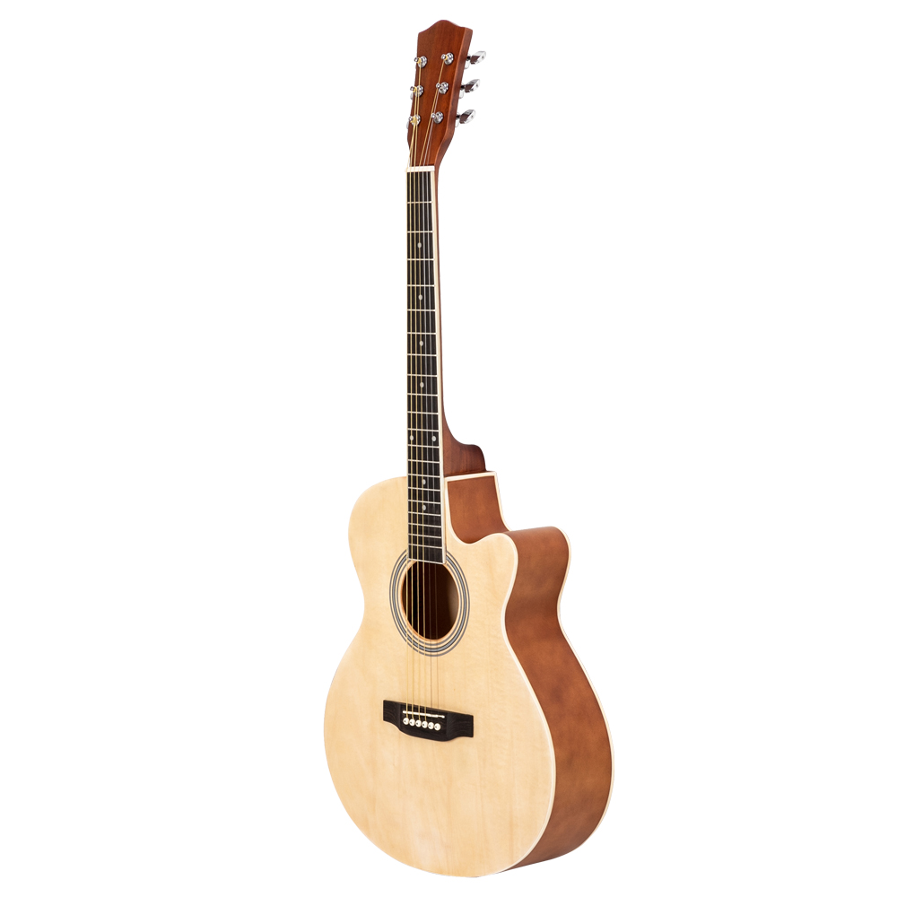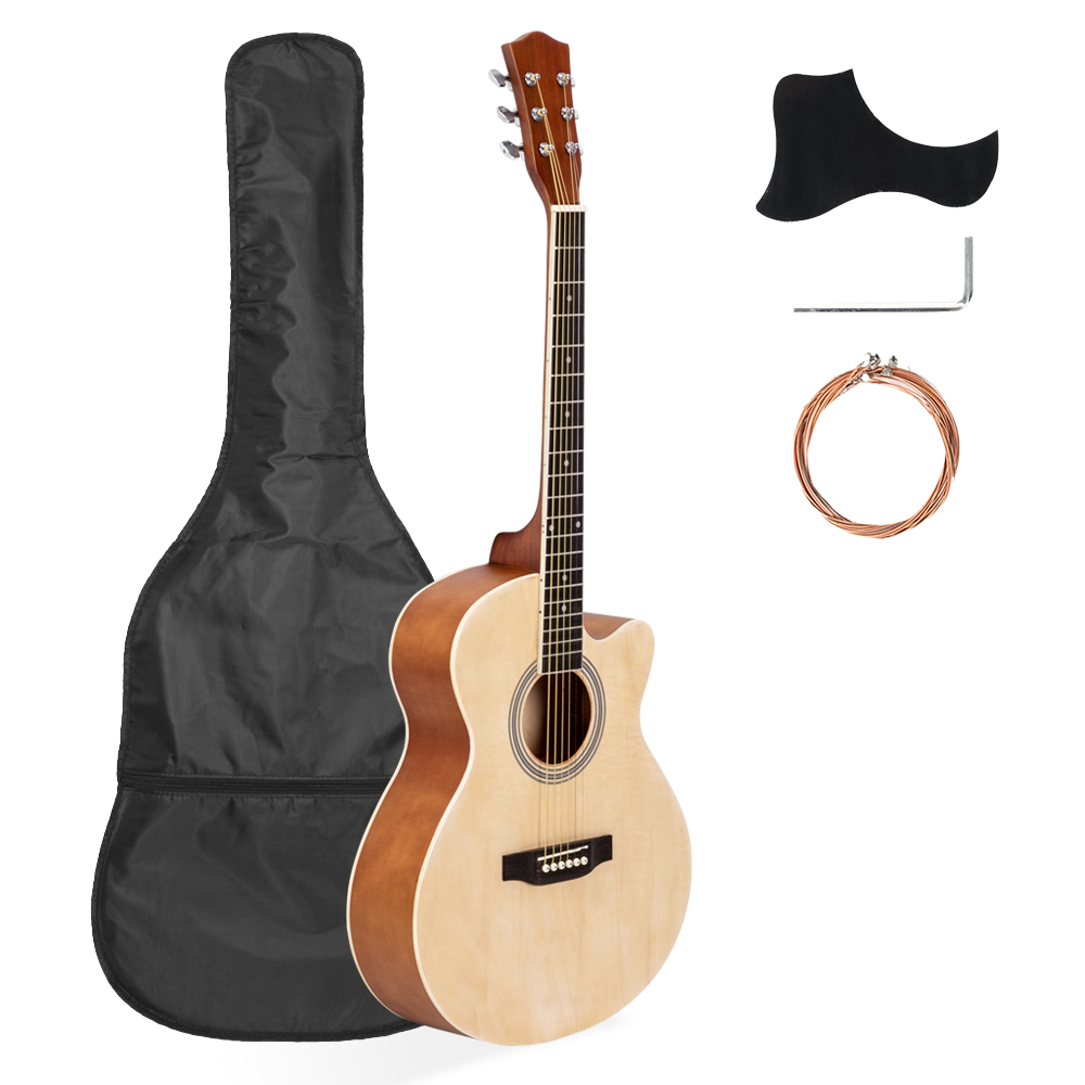 40 INCH CUTAWAY ACOUSTIC GUITAR 20 FRETS BEGINNER KIT BAG GUARD WRENCH STRINGS BURLYWOOD [ENDED]