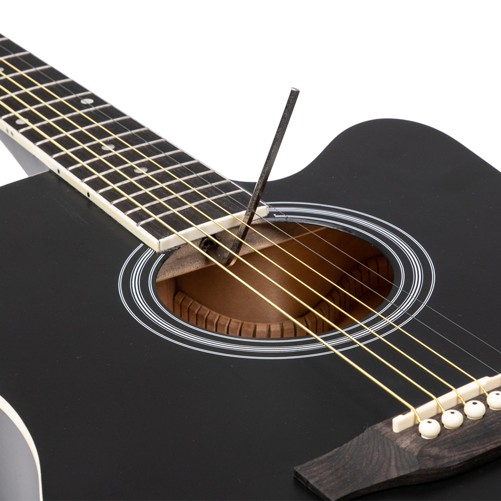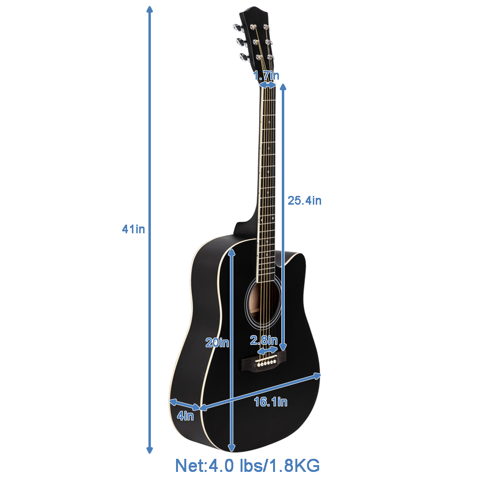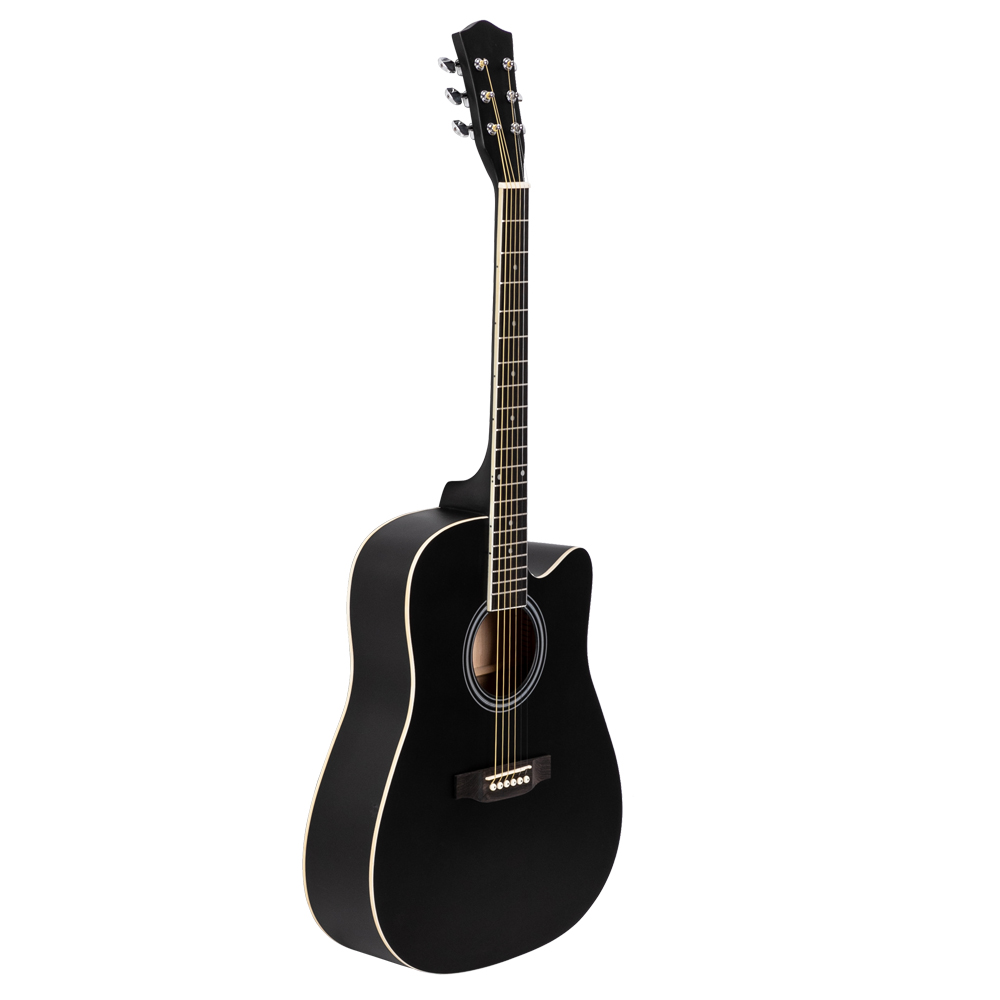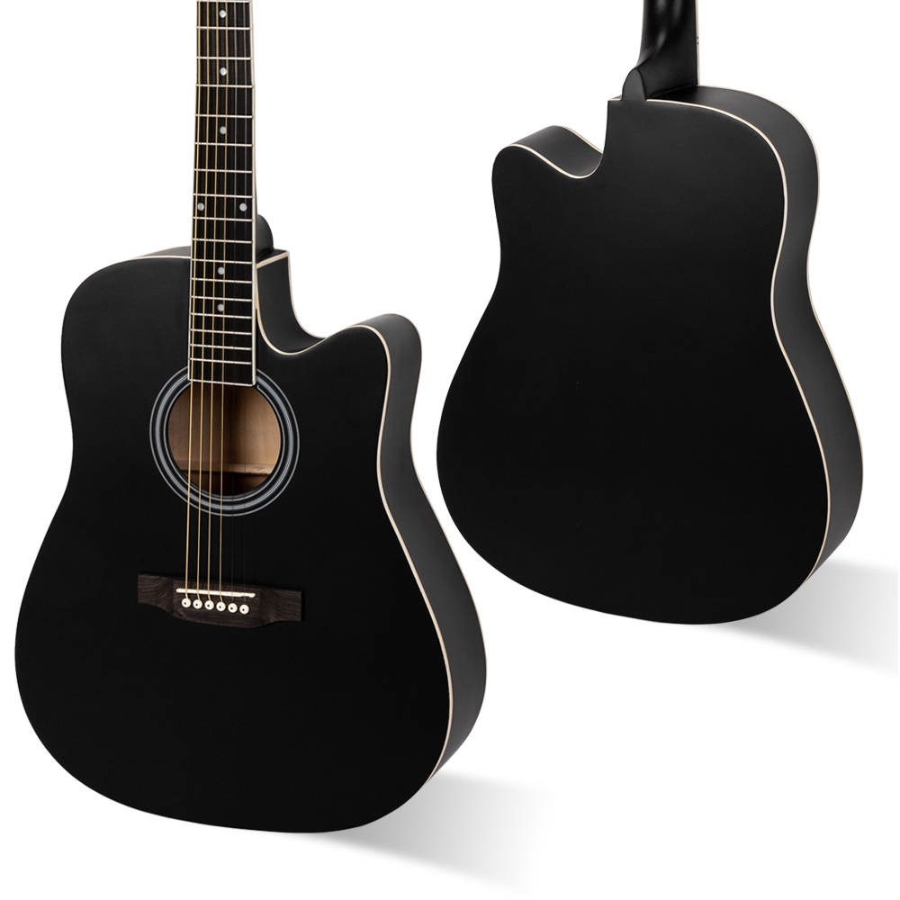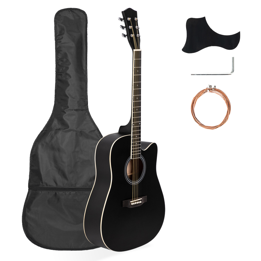 41" FULL SIZE CUTAWAY ACOUSTIC GUITAR 20 FRETS BEGINNER KIT BAG COVER WRENCH STRINGS BLACK [ENDED]