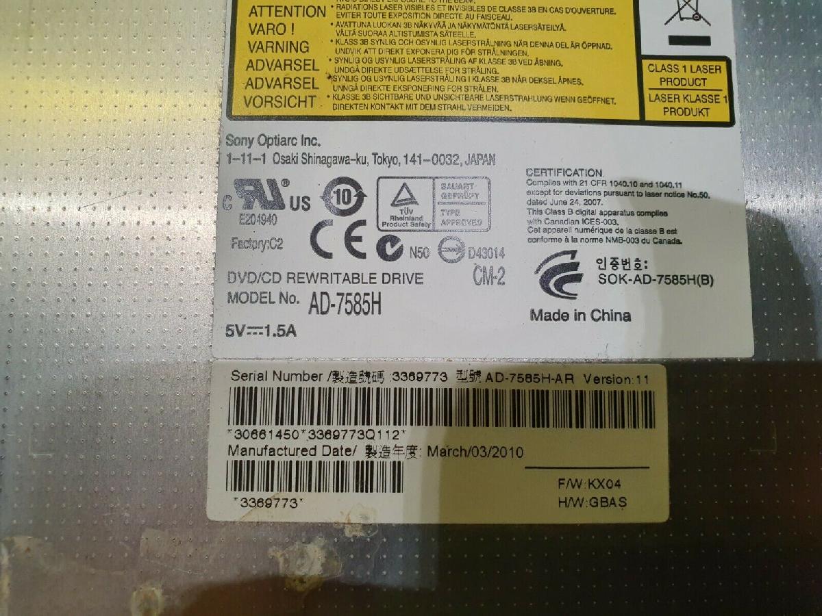 PACKARD BELL EASYNOTE TJ71 MS2285 CD/DVD WRITER OPTICAL DRIVE AD-7585H// B195 [ENDED]