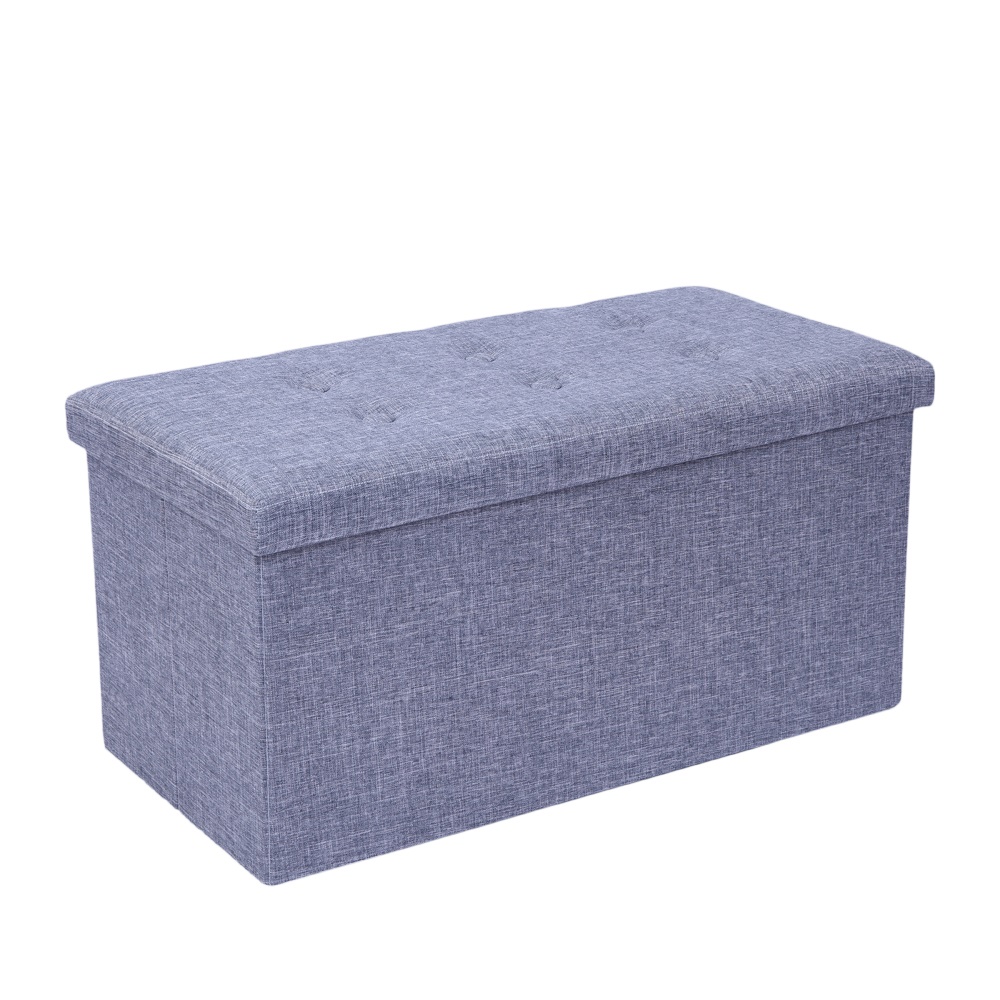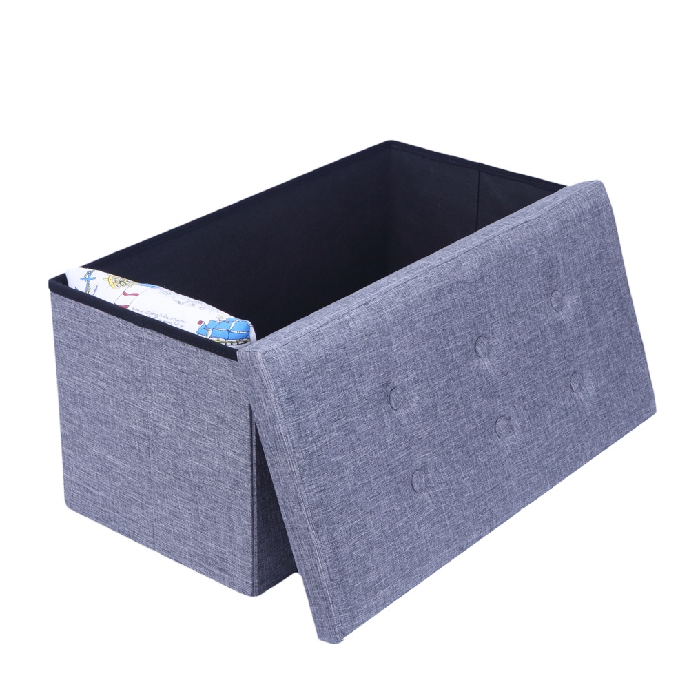 PRACTICAL HESSIAN RECTANGLE SHAPE SURFACE WITH LEATHER BUTTON FOOTSTOOL GREY [ENDED]