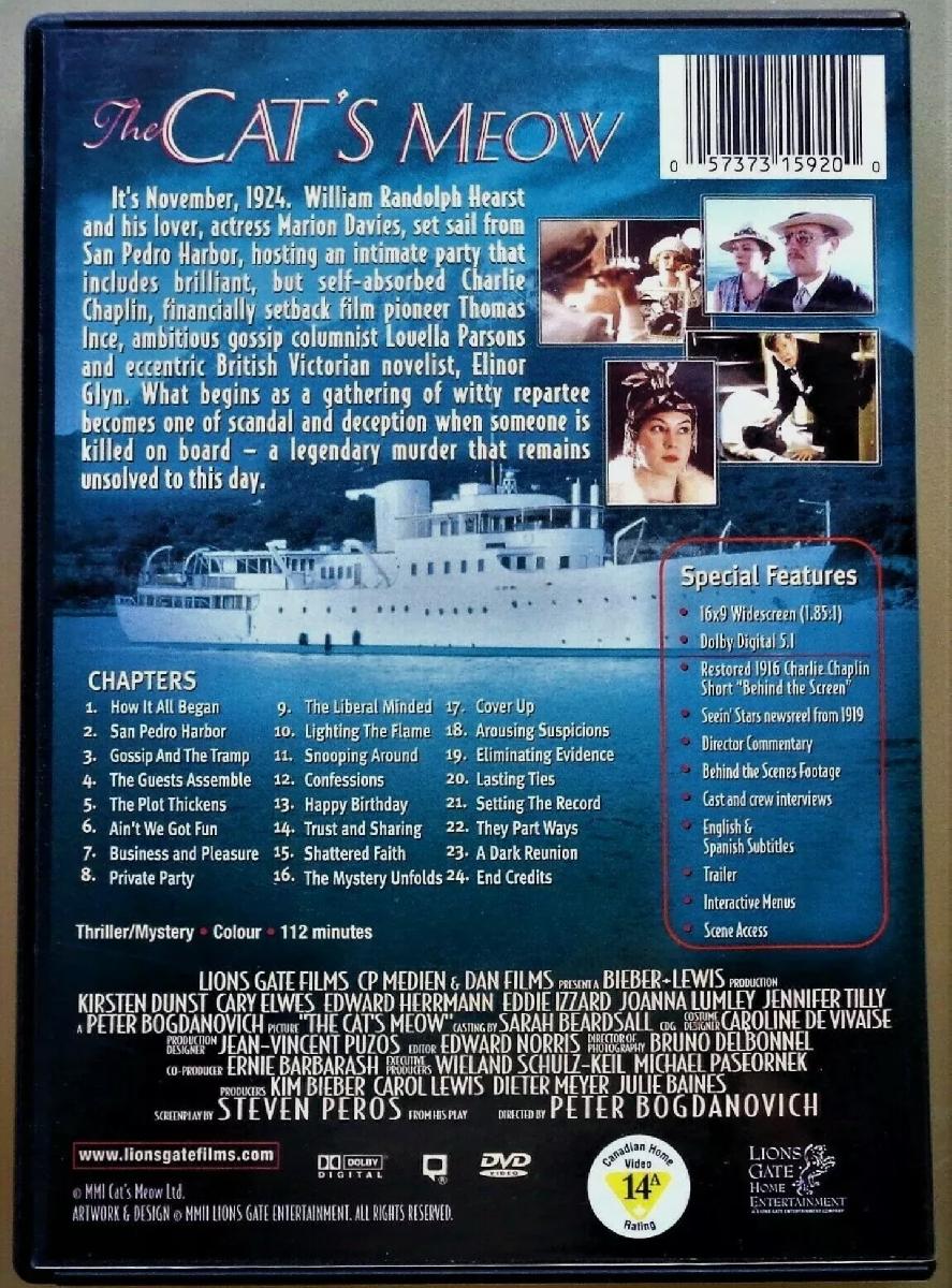 THE CAT'S MEOW DVD ~ MYSTERY THRILLER ~ KIRSTEN DUNST JOANNA LUMLEY R1 [ENDED]
