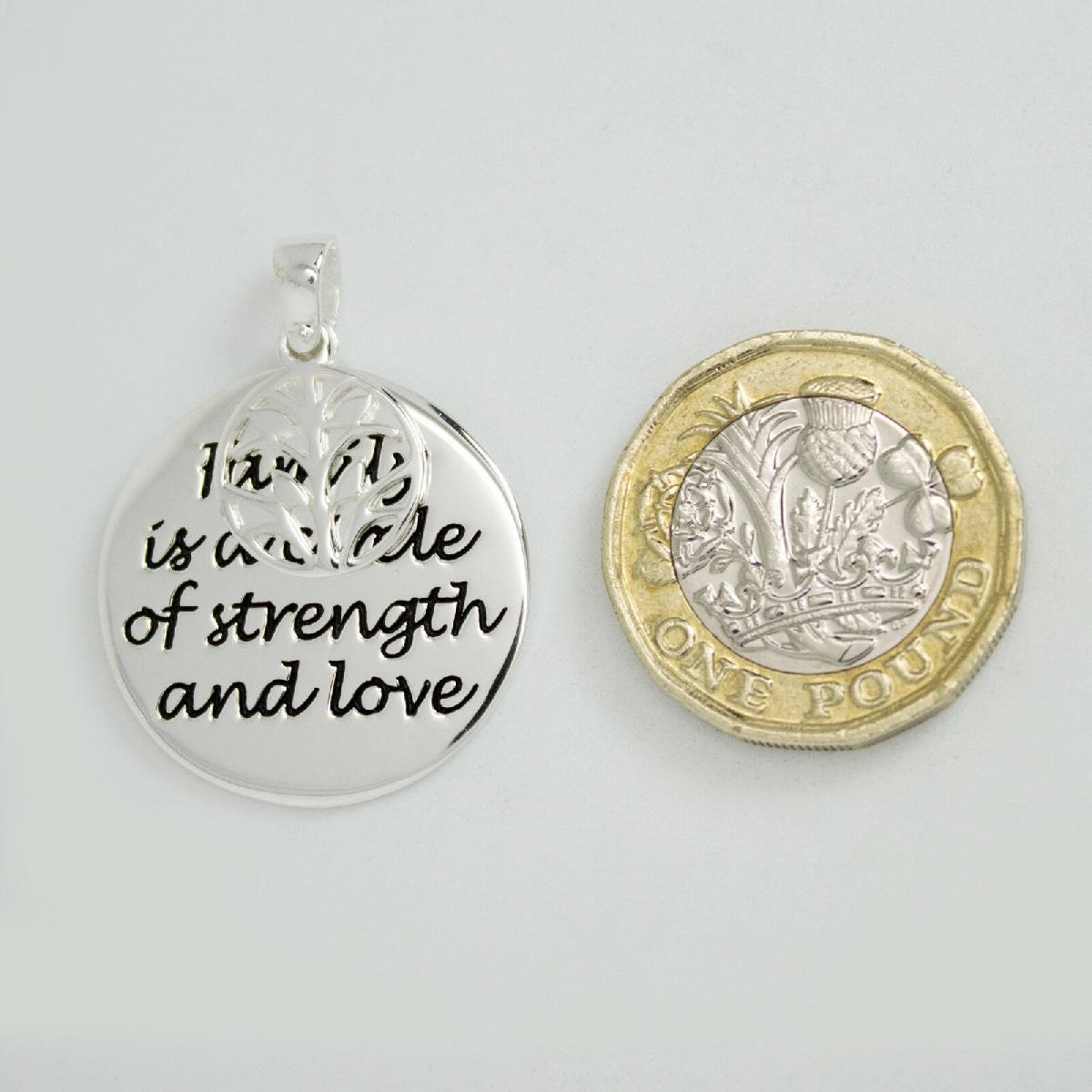 925 SOLID STERLING SILVER ";FAMILY IS A CIRCLE OF STRENGTH AND LOVE PENDANT [ENDED]