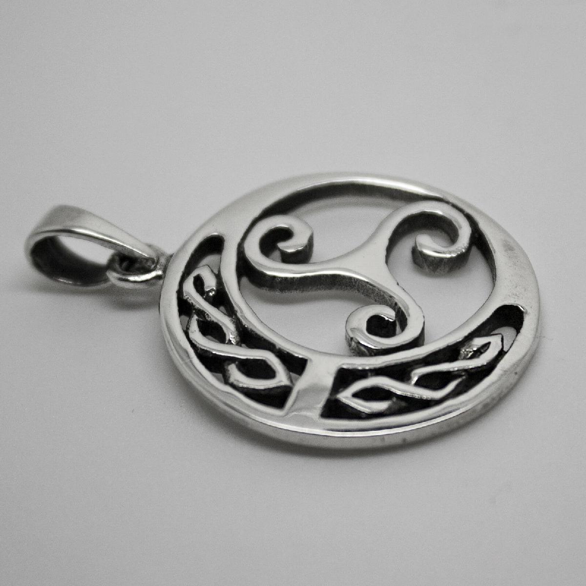 925 SOLID STERLING SILVER CELTIC NEO PAGAN TRISKEL TRISKELION SPIRAL PENDANT [ENDED]
