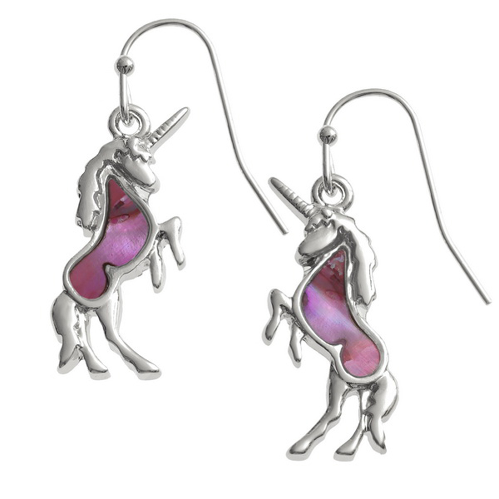 PINK PAUA SHELL UNICORN EAR WIRE EARRINGS [ENDED]