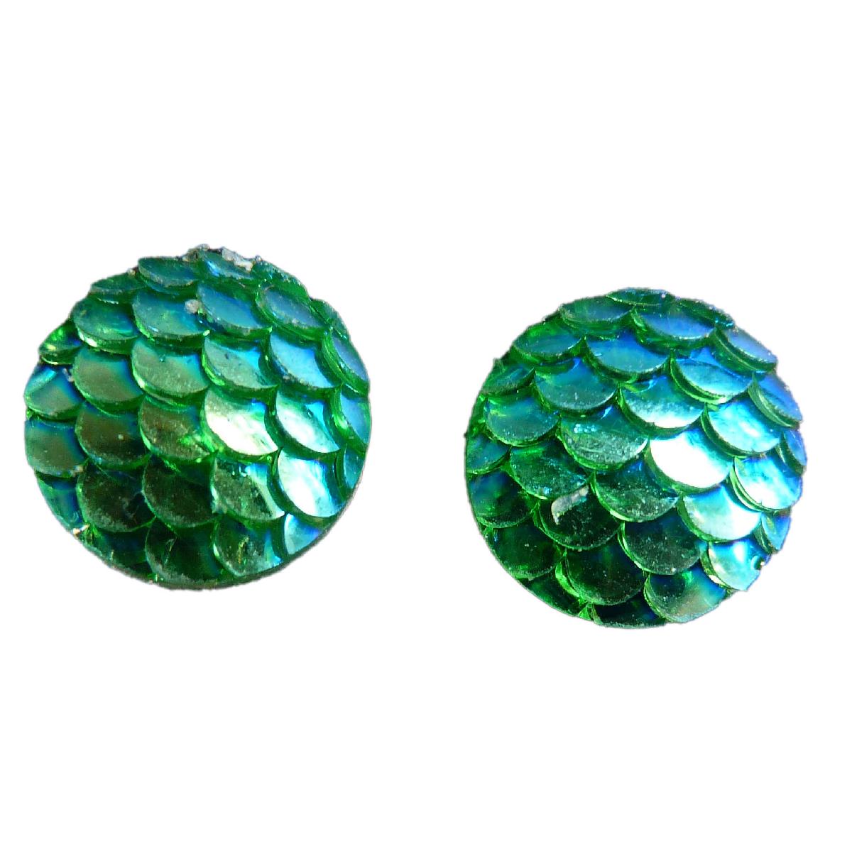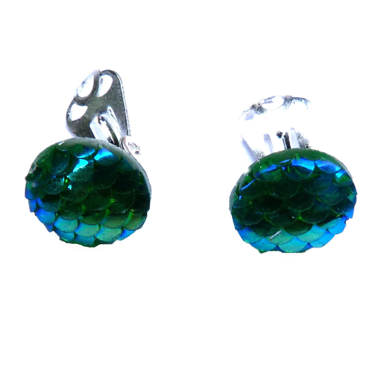 GREEN MERMAID STYLE EARRINGS - CLIP ON, MAGNETIC OR STUD - IDEAL CHILDREN (12MM) [ENDED]