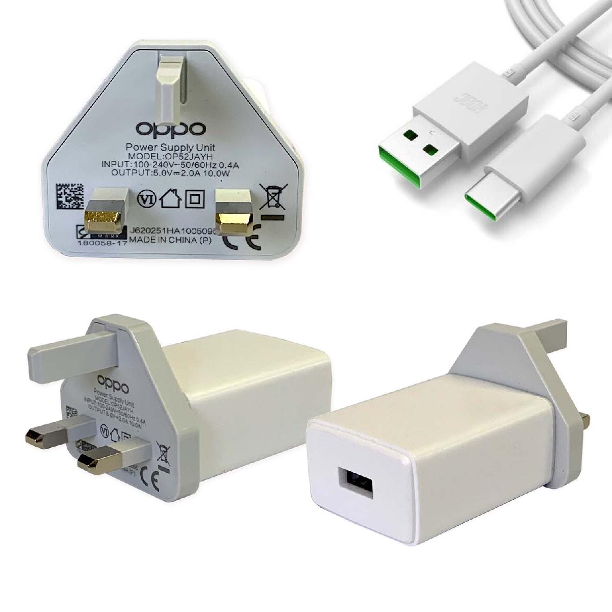 ORIGINAL OPPO VOOC 10W UK 3 PIN FAST RAPID CHARGER OP52JAYH AND USB C D287 CABLE [ENDED]