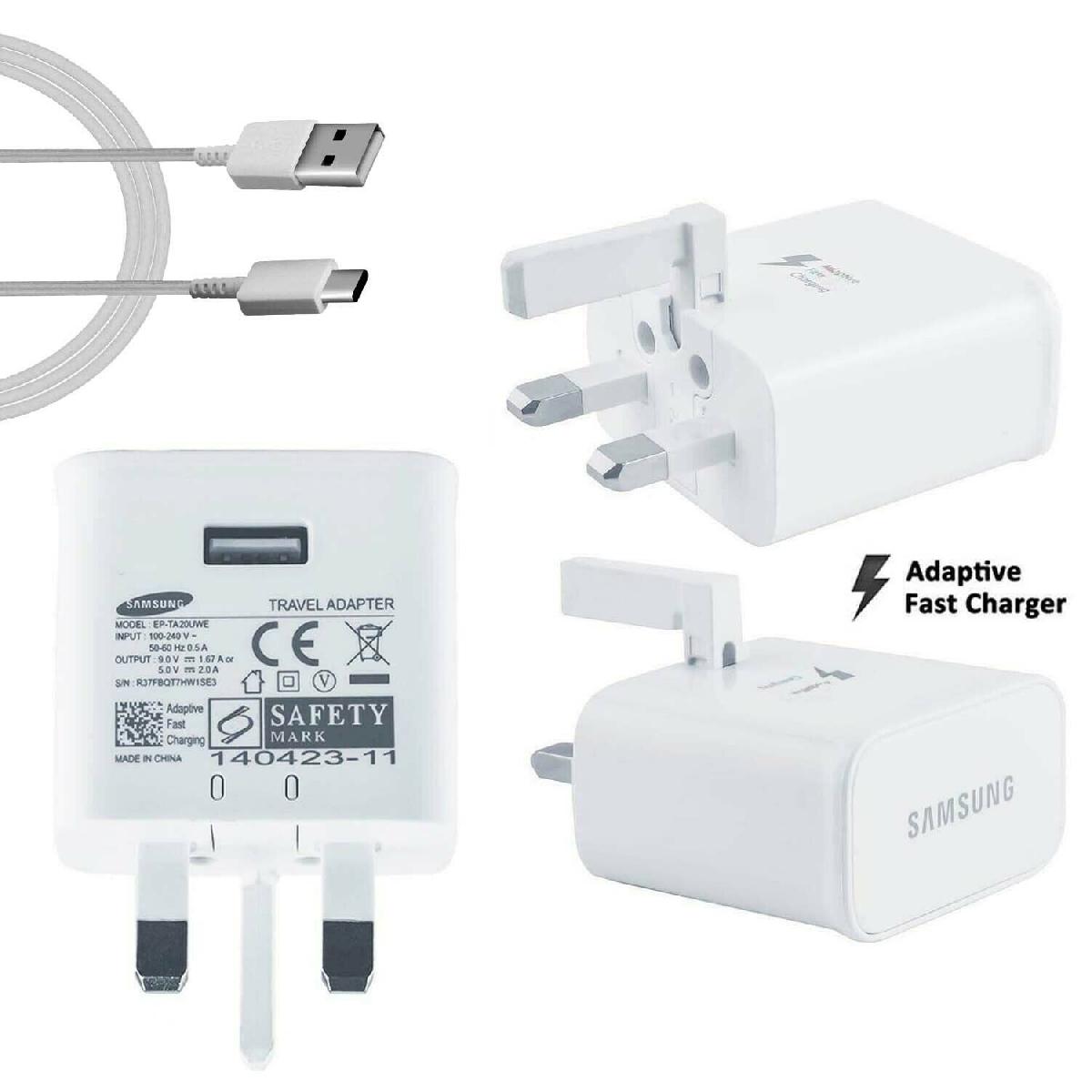 OFFICIAL SAMSUNG UK 3 PIN 15W ADAPTIVE FAST MAINS CHARGER USB C CHARGING CABLE IN WHITE [ENDED]